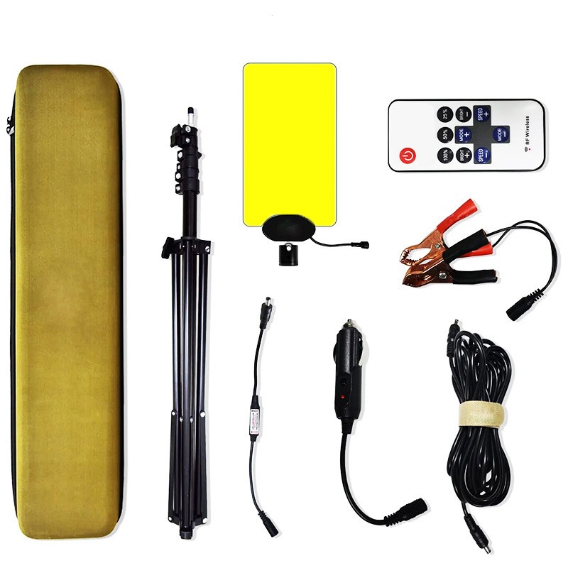 اقلام همراه شامل کابل برق، کابل گیرهدار، کابل فندکی، ریموت کنترل، کیف حمل و پایه تاشو است که حمل و نصب دستگاه را بسیار آسان میکند. طراحی مقاوم، نوردهی قدرتمند، و قابلیت حمل بالا، این مدل را به انتخابی مناسب برای حرفهایها و کاربران عمومی تبدیل کرده است که به دنبال روشنایی مطمئن و قابل اعتماد در محیطهای متغیر هستند.